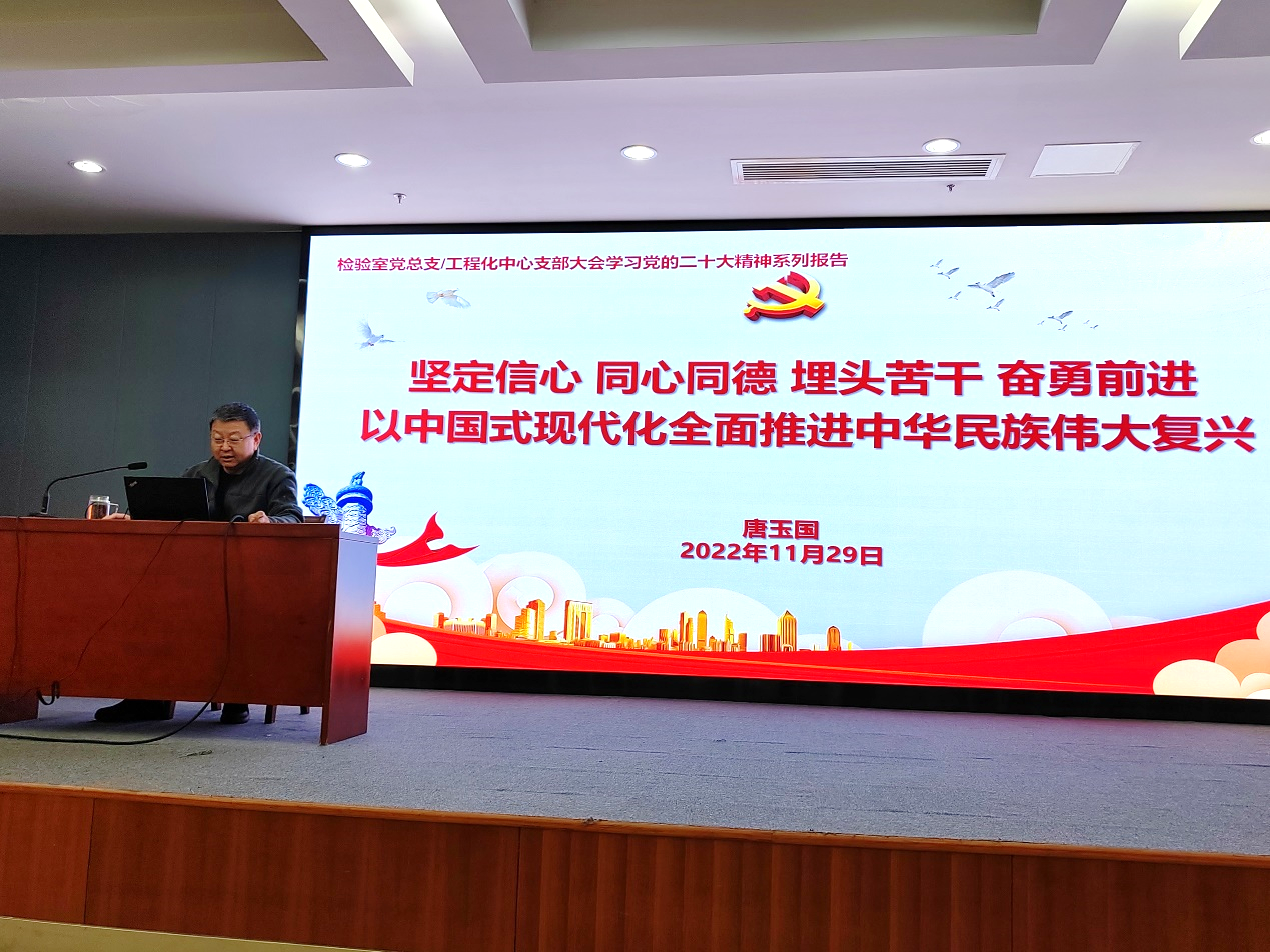 11月29日下午,检验室第一、二党支部联合召开“学习党的二十大精神,践行国家战略科技力量使命”主题党课,会议由检验二支部书记段生宝主持。