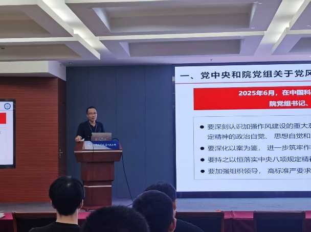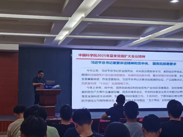 2025年9月8日,研究生第一、二、三党支部与光学室党支部联合召开支部大会开展8月—9月份党日活动,主题为“学习中国科学院2025年夏季党组扩大会议精神”。 首先,由研究生第一党支部书记江先锋老师带领学习2025年度中国科学院夏季党组扩大会议精神传达学习。会议明确,深入学习贯彻习近平总书记重要指示批示精神,全面落实党中央赋予中国科学院的新使命新要求,是当前及今后一个时期的中心工作。其核心在于聚焦“抓攻坚、求突破,抓规划、谋发展,抓改革、提效能,抓党建、强作风”。全院上下务必怀揣高度的使命感、责任感与紧迫感,主动担当、狠抓落实,为中国科学院奋力抢占科技制高点,如期全面完成“四个率先”和“两加快一努力”的战略任务,再立新功、再创佳绩。 随后,由中国科学院苏州医工所副所长杨西斌老师讲廉政党课。会议指出,大家要以习近平总书记重要指示批示精神为根本遵循,一定要深刻吸取违法违纪人员的惨痛教训,以案为鉴、以案明纪,举一反三、引以为戒,警钟长鸣,严于律己,筑牢党纪国法防线,永葆清正廉洁本色,将党纪国法内化为科技创新的行动准则,把清正廉洁转化为攻坚克难的底气,努力推动研究所加快创新发展。 最后,杨西斌副所长号召大家会后观看加强作风建设视频《信仰》《风范》,研究生第一党支部委员陶明丽表示,《信仰》《风范》让我深感信仰之力,先辈以生命写就担当与清廉。作风映照初心,我辈当以此为镜,拒做佛系干部,把务实奉献写进日常。