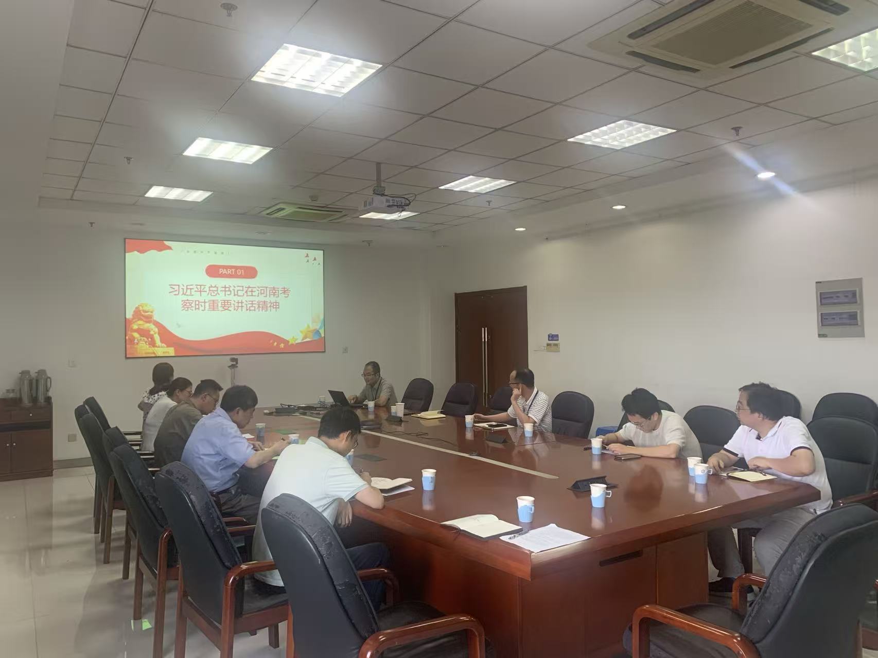 为深入贯彻中央八项规定精神,7月4日下午职能部门第三党支部在A3楼412会议室组织开展“深入贯彻中央八项规定精神学习教育走深走实”主题党日活动。会议党支部书记王邺主持,11位党员同志参加。 首先由杨杰同志领学,习近平总书记在河南考察时重要讲话精神、《党的十八大以来深入贯彻中央八项规定精神的成效和经验》和《八项规定改变中国》主要内容,广大党员要深入学习领会习近平总书记关于加强党的作风建设的重要论述,扎实开展深入贯彻中央八项规定精神学习教育,锲而不舍落实中央八项规定精神,以高标准、严要求加强作风建设。 其次由薛泽宇同志传达学习院警示教育案例,广大党员同志要引以为戒、警钟长鸣,时时刻刻不忘初心与使命,自觉把廉洁自律贯穿到工作与生活中去。 然后由肖心通同志分享参加江西瑞金干部学院培训的心得与体悟,肖心通同志讲述了吃水不忘挖井人、厉行勤俭节约的苏区精神,激励党员同志形成优良作风,走好新时代长征。 最后,王邺同志先带领全体党员观看习近平新时代中国特色社会主义思想专题培训党员联学班第四期学习视频。