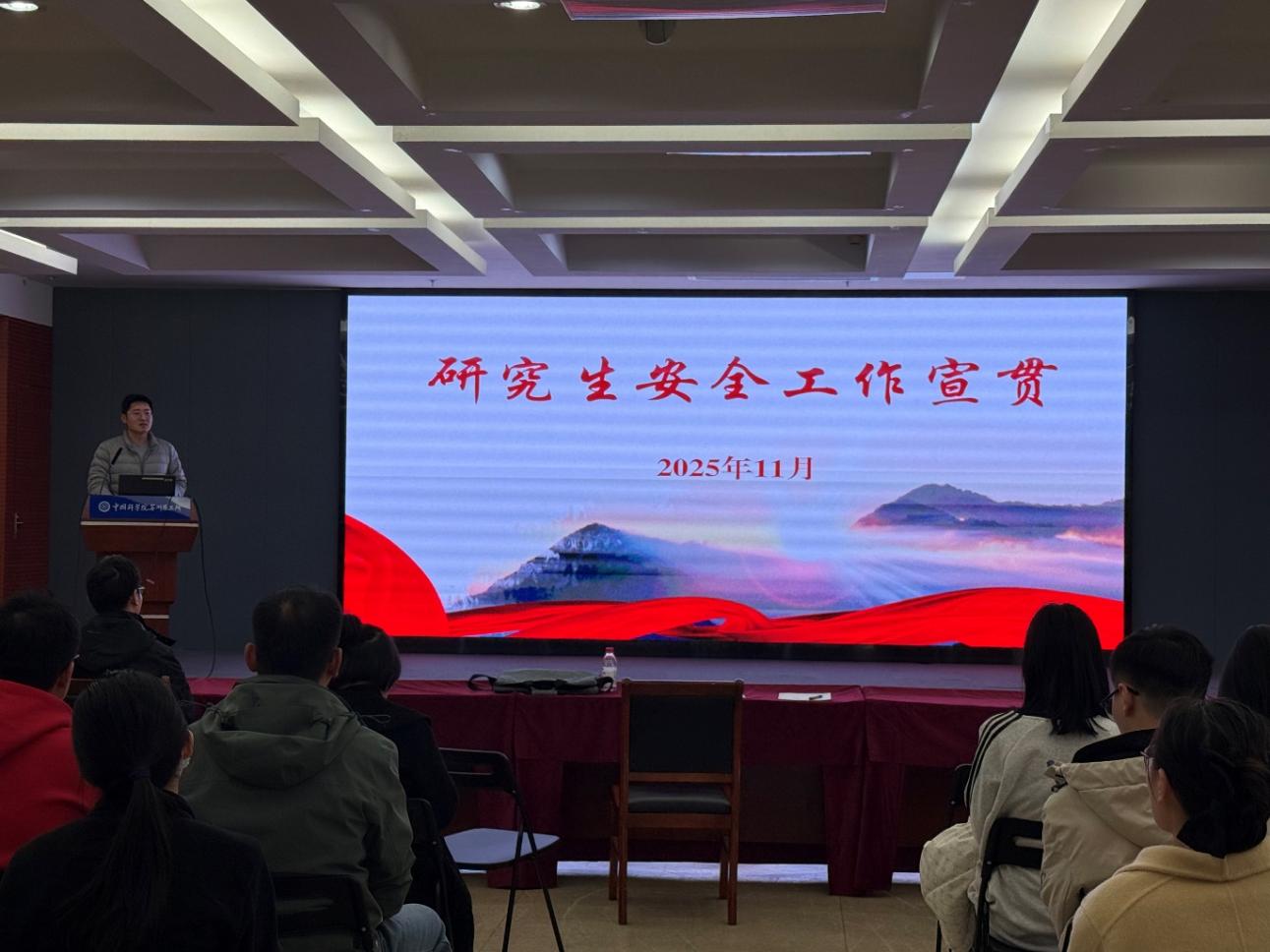 会议第二项,由研究生第三党支部书记邢浩老师进行研究生安全教育工作宣贯。研究生安全工作宣贯是保障师生人身安全、维护科研环境稳定的基石,提升学生防范意识与应急能力。