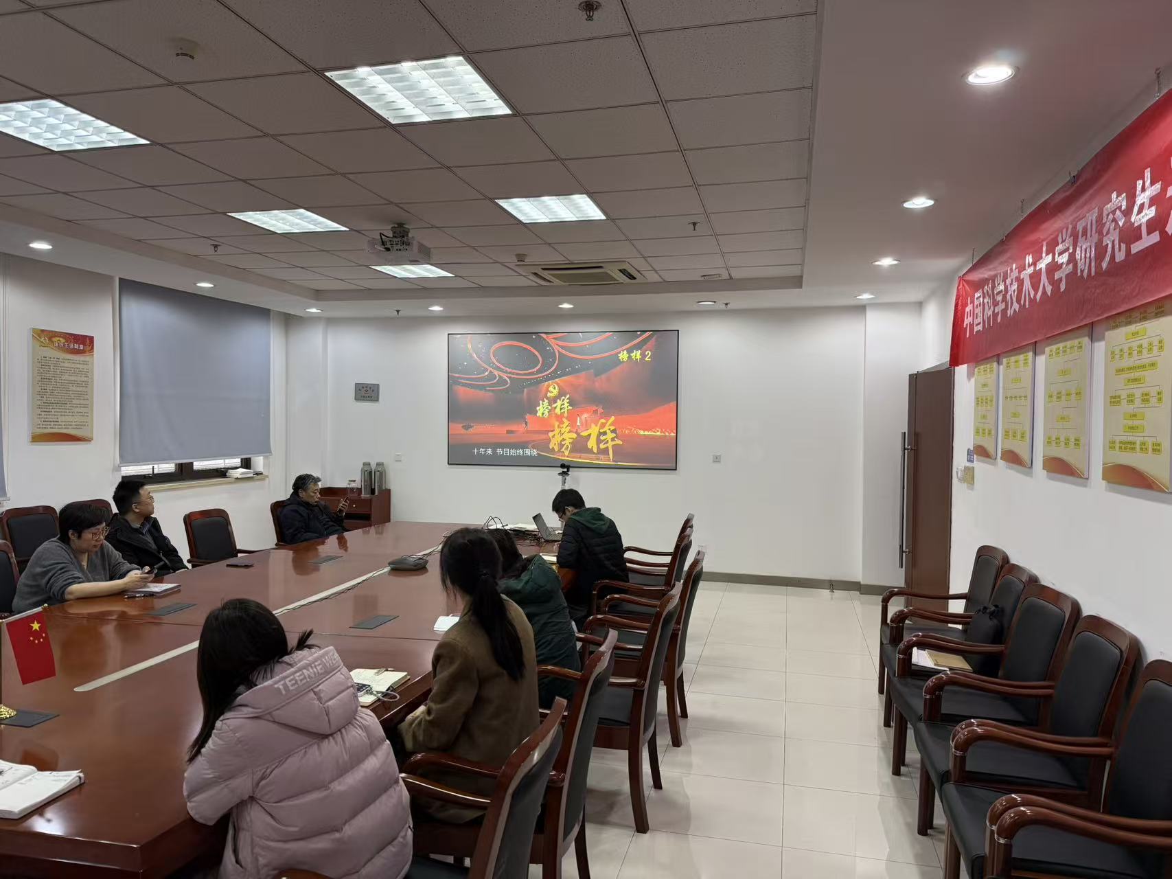 接下来,全体党员共同观看了专题节目《榜样10》, 通过大屏幕沉浸式学习新时代共产党员的先进事迹。