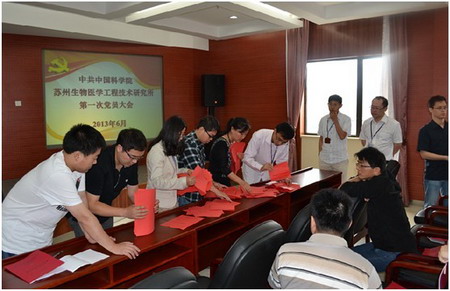 最后,中共中科院苏州生物医学工程技术研究所第一次党员大会在庄严的《国际歌》声中胜利闭幕。
