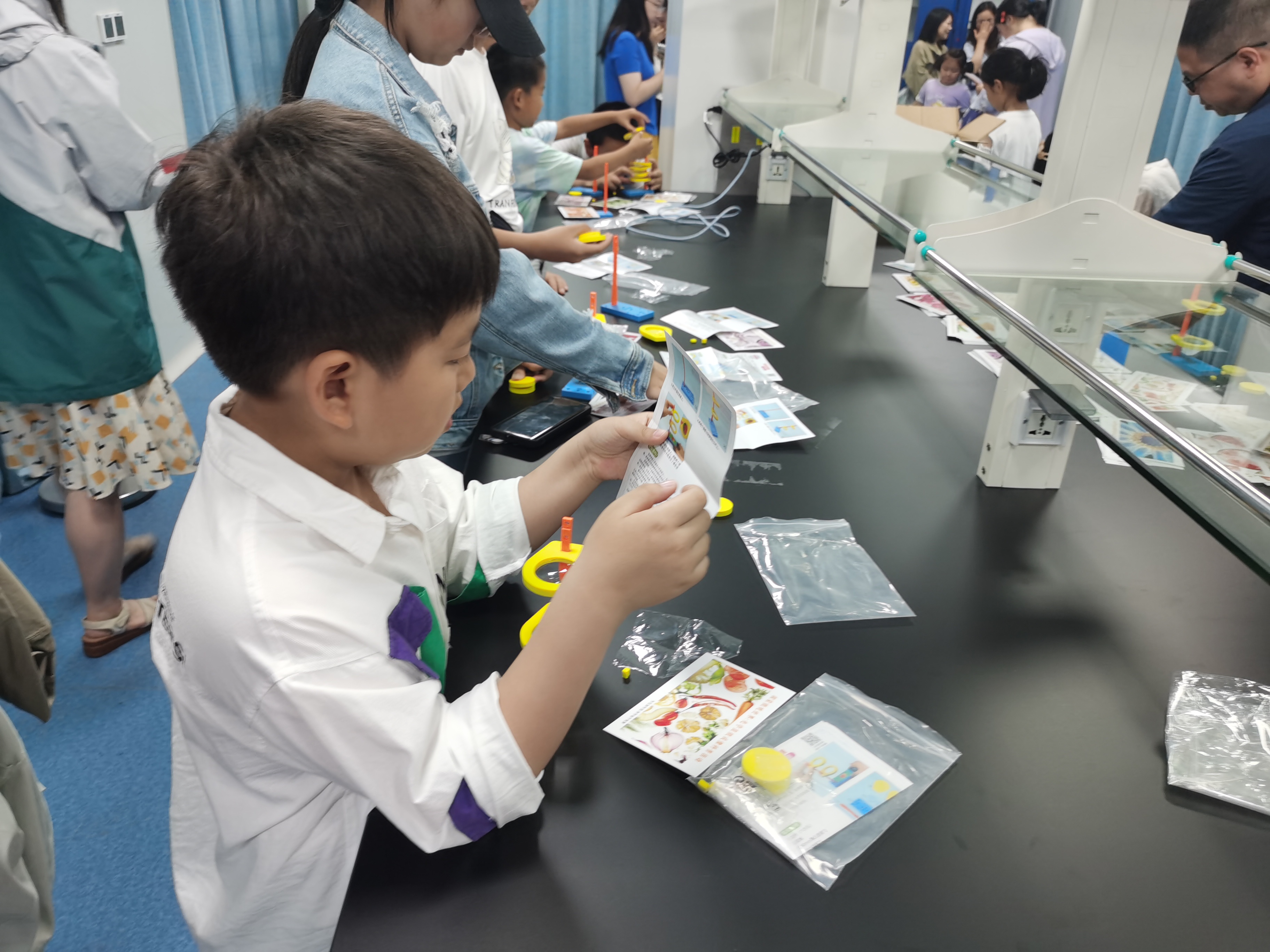 在这里,讲解员张洁和宋雪燕为医工宝贝们介绍了我所自主研发的前沿高端显微镜,并提供了约200片不同种类的动植物标本,指导他们亲手操作显微镜,观察微观世界。医工宝贝们还亲手制作了小型显微镜模型,作为此次活动的纪念品。
