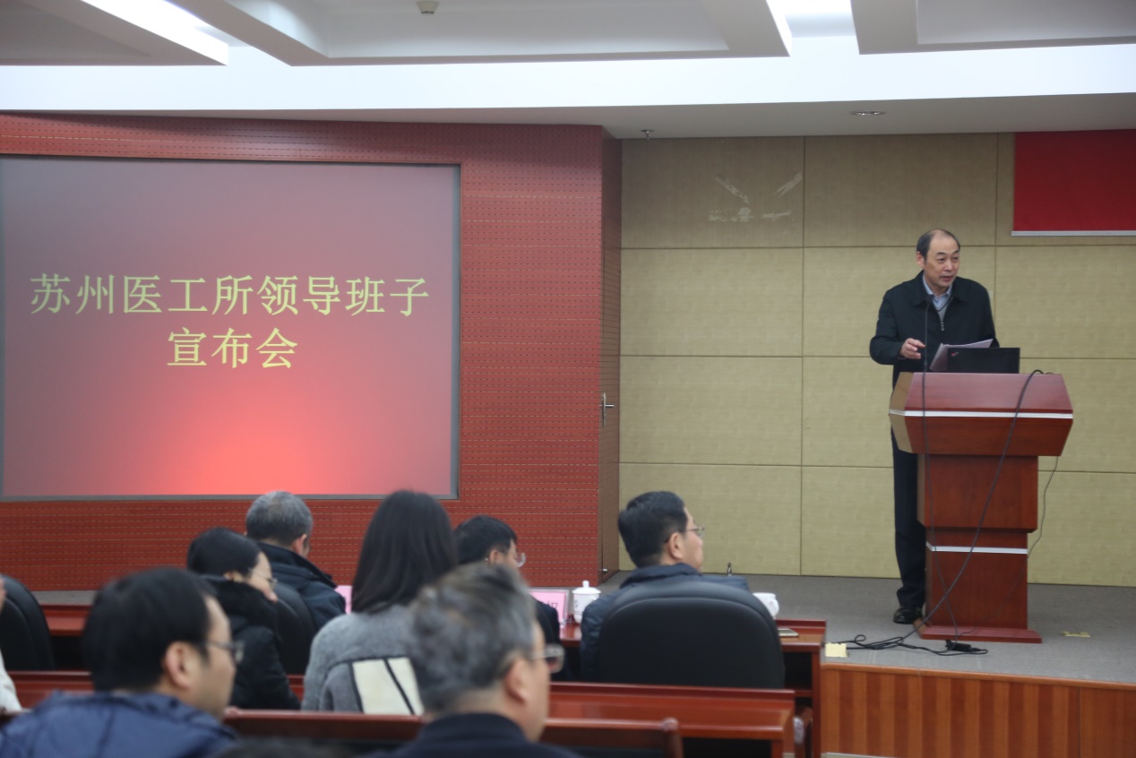 朱怀诚宣读了中科院和中科院党组关于苏州医工所新一届行政领导班子的任职决定:唐玉国任苏州医工所所长,邓强、武晓东和吴炜任副所长。
