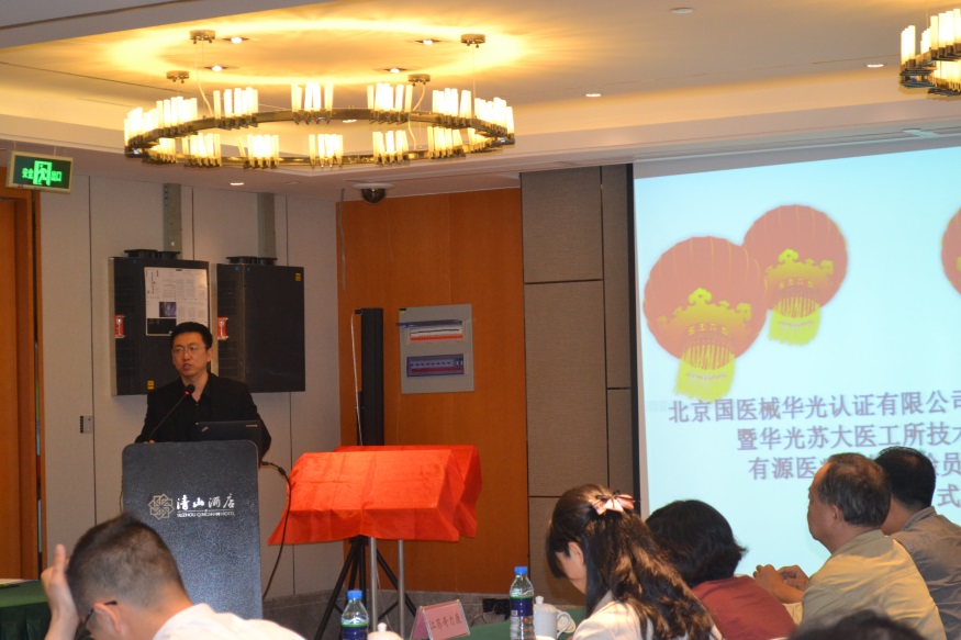 5月18日,中科院苏州医工所、北京华光认证有限公司、苏大卫生与环境研究所在清山酒店举行了“华光苏大医工所技术服务中心”和“有源医疗器械检验员培训中心”的揭牌仪式。苏州医工所副所长武晓东、北京华光认证有限公司董事长陈志刚、苏州大学继续教育处处长缪世林、苏州市食品药品管理局局长许正龙,以及中国医疗器械行业协会外科植入专业委员会、江苏省医疗器械产业园、苏州高新区科技局、苏州科技城等单位的领导共计60多人出席了本次揭牌仪式。